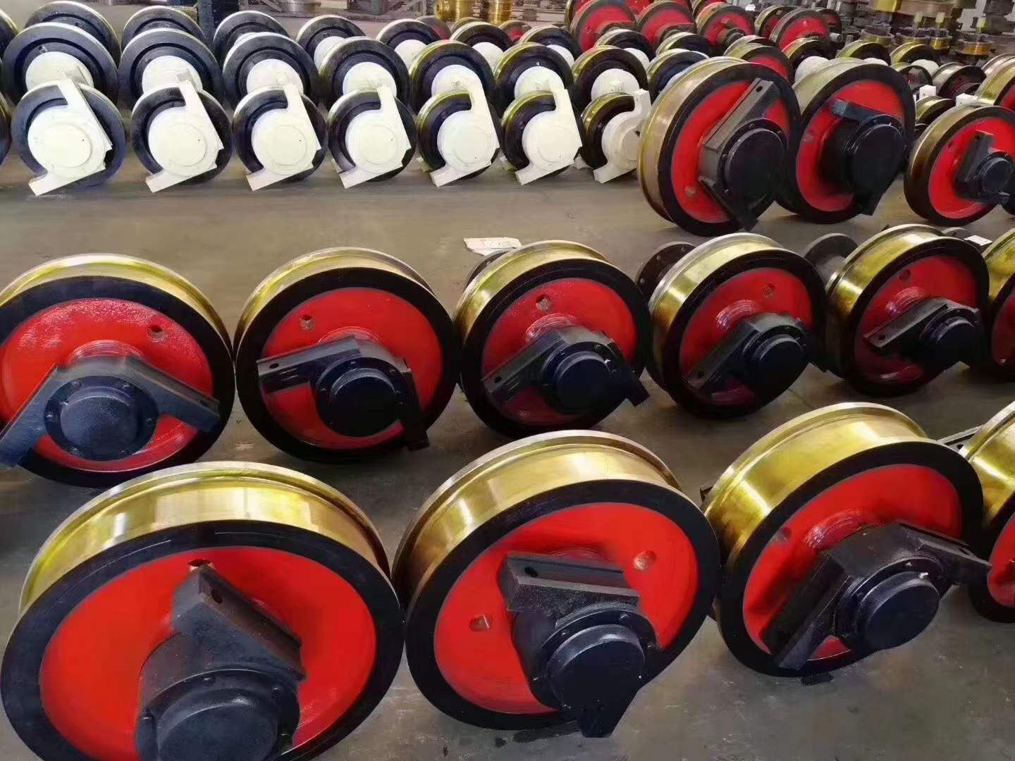 行車輪主要用于單梁起重機及小噸位的葫蘆雙梁起重機,主要規格有兩種:直徑三百和四百,LD車輪行走機構主要由車輪軸車輪片軸承齒圈四部分組成,車輪軸材質為45號鋼,經調制處理硬度達到HB217-HB255,內有黃油孔,便于潤滑,車輪片由45號鋼鍛造而成,目前高端的起重機都采用鍛件。