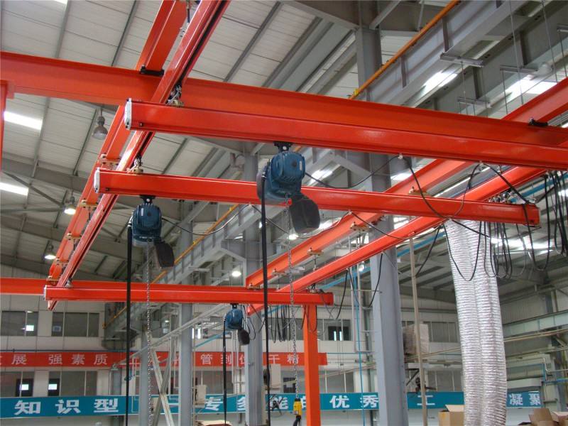 主要由KBK軌道、環鏈電動葫蘆及其標準的安裝組件構成。從只用幾米直軌將兩個工程直接連接起來的簡單裝置到復雜的懸掛單軌系統,從簡單的手動控制到具有計算機集成控制的自動化系統。 KBK柔性組合式起重機設備更易于適應新的物料搬運要求。KBK只需將現有部件重新布置或加入些新部件**可實現軌道系統的改建或擴建。主要應用于比較精密的裝配線,例如汽車裝配線等。額定起重量在0.1~5t。