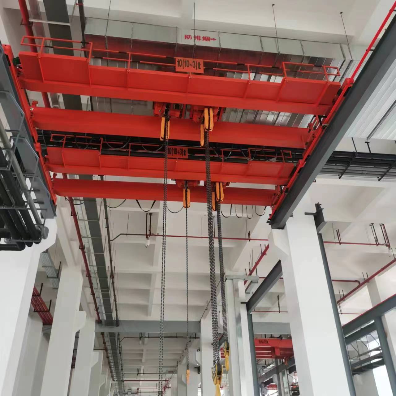 1、雙梁橋式起重機(jī)機(jī)械部分:分為三個(gè)機(jī)構(gòu)即起升機(jī)構(gòu)、小車運(yùn)行機(jī)構(gòu)和大車運(yùn)行機(jī)構(gòu)。起升機(jī)構(gòu)是用來(lái)垂直升降物品,小車運(yùn)行機(jī)構(gòu)是用來(lái)帶著載荷作橫向移動(dòng);大車運(yùn)行機(jī)構(gòu)用來(lái)將起重小車和物品作縱向移動(dòng),以達(dá)到三維空間里做搬運(yùn)和裝卸貨物用。