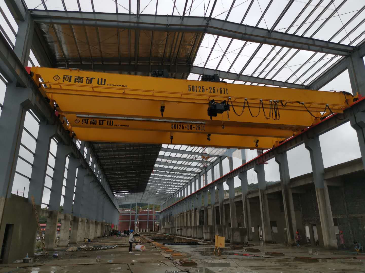 雙梁橋式起重機(jī),主要由橋架、大車運(yùn)行機(jī)械、小車、電器設(shè)備等組成。根據(jù)使用頻繁程度不同,分為A5、A6二種工作**。工作環(huán)境溫度為-25℃~40℃范圍內(nèi),起重量有2t-500t,適用于跨度 7.5-33.5米。本產(chǎn)品為一般用途起重機(jī),多用于一般機(jī)械制造、煤礦化工等場所,用來搬運(yùn)和裝卸物料。